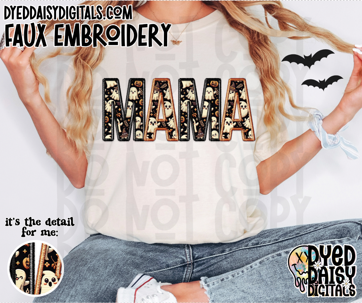 Jovial Ghosts Faux Embroidery MAMA- Digital Download