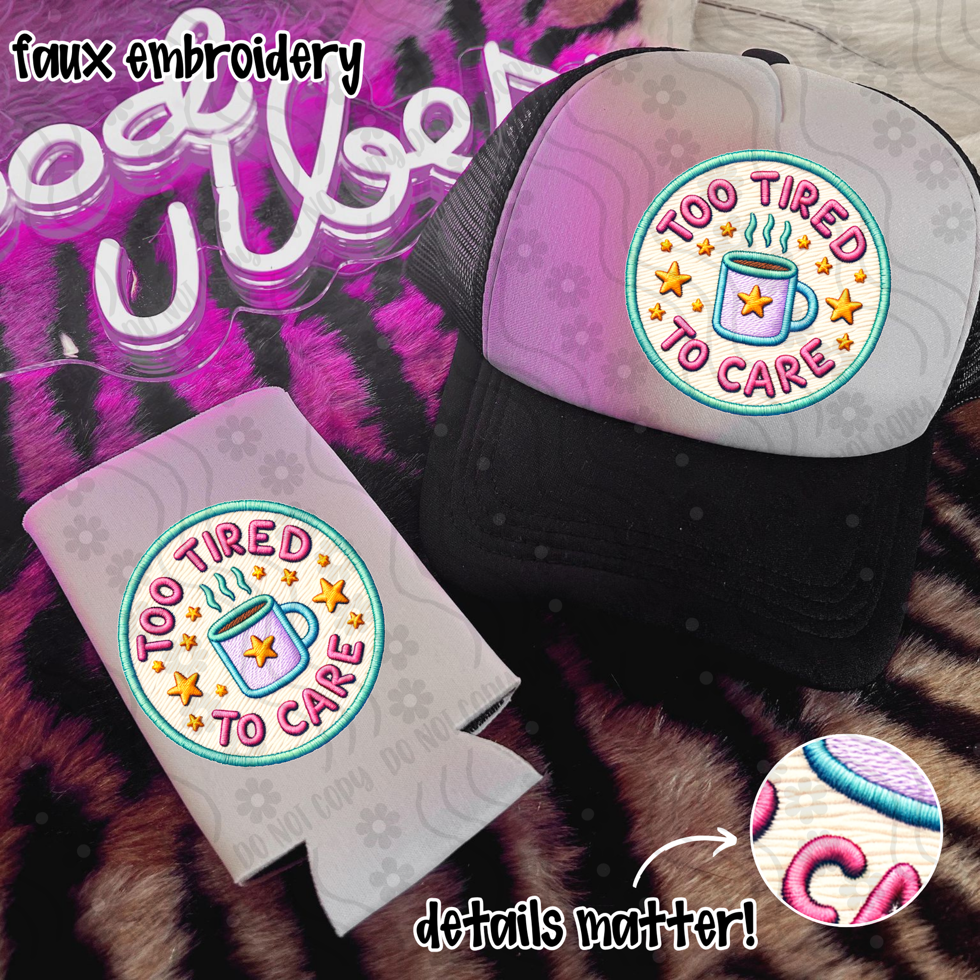 Too Tired To Care Faux Embroidery - Digital Download - July 2025